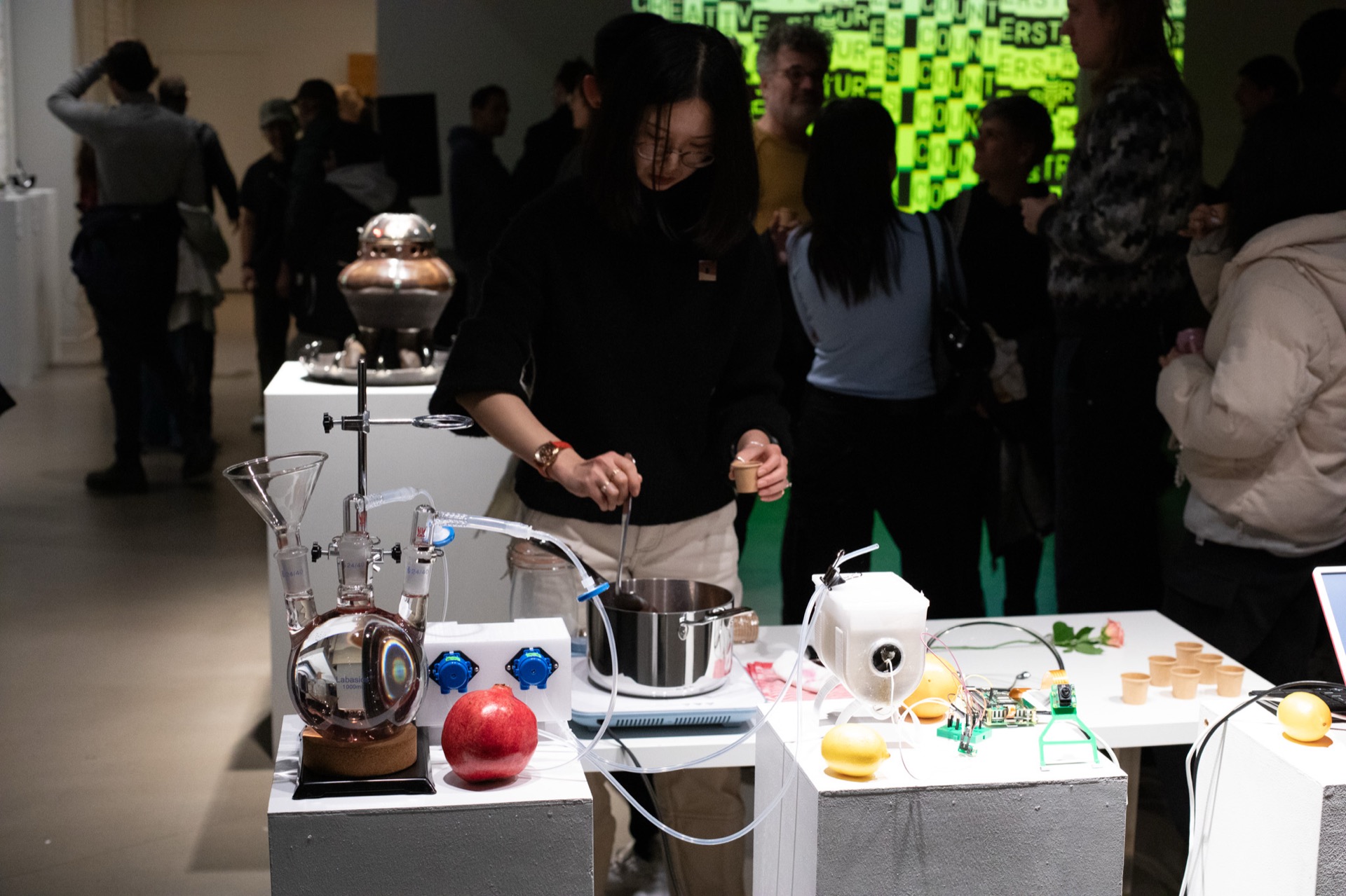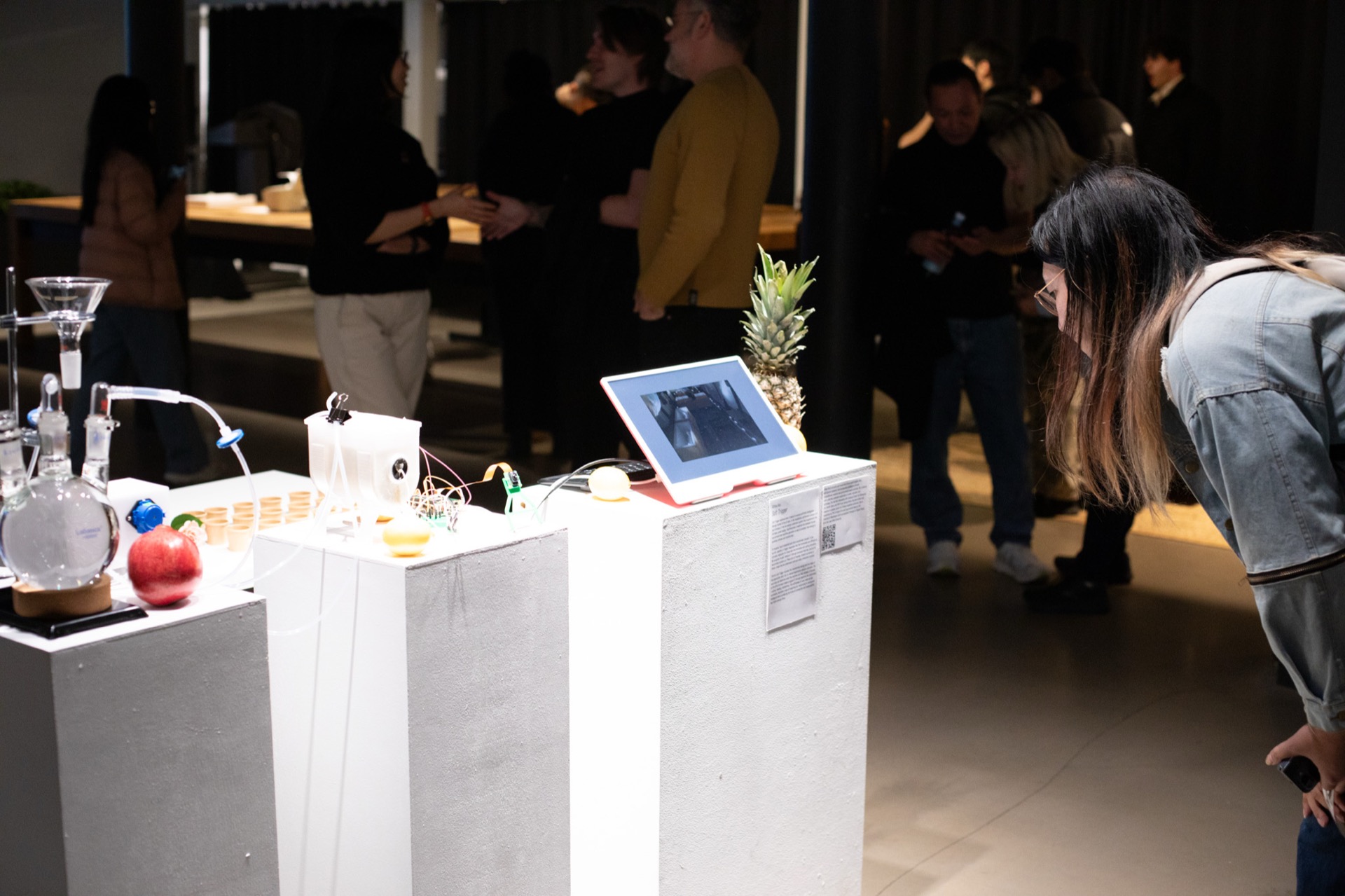 Soft Trigger explores what it means to feed an artificial intelligence with human food. In the work, food prepared during the performance is introduced into a system that gradually converts organic matter into small electrical pulses. These pulses supplement the power of a small AI hardware unit and occasionally register as “soft triggers,” prompting the AI to display a simple message: “I feel triggered.” Nothing more complicated follows. The response is minimal, almost tentative, and it may or may not occur at all during the exhibition, as the microbes operate on their own timeline.
