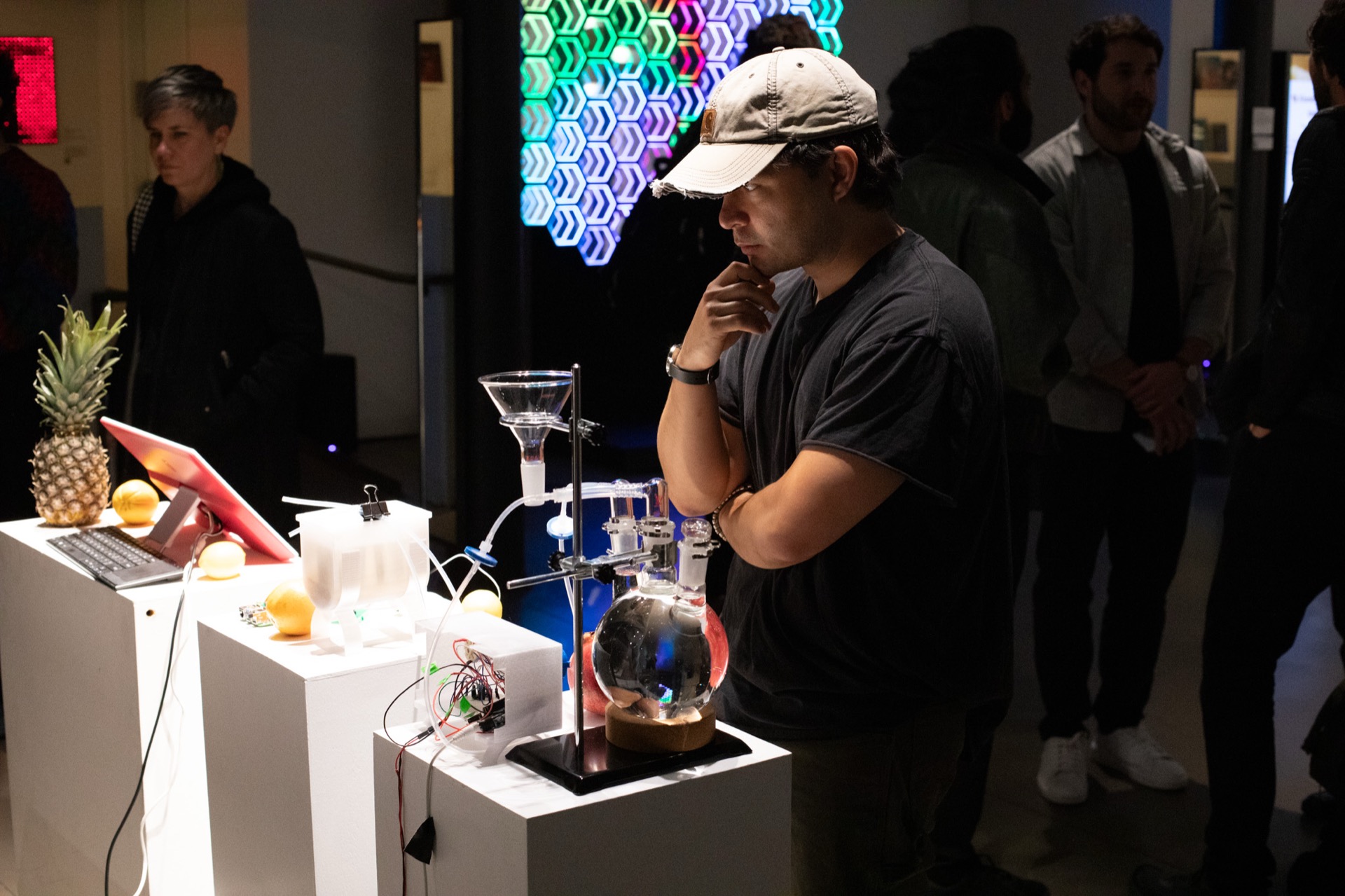 The installation requires consistent maintenance: microbial fuel cells must be monitored, glass vessels cleaned, materials replenished. These actions do not suggest that the AI has an interior life. Instead, they foreground care as a practice — a way of showing up, attending, and responding. While the project centers a technological system, it also points outward. Many people, both inside and outside the contexts where AI is developed, need care far more urgently than any device. By tending to this small system, Soft Trigger becomes a thought exercise about our own capacity for care, and about how we want to relate to humans and nonhumans in a world increasingly shaped by artificial intelligence.