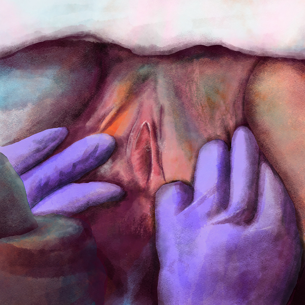 The View is a growing drawing and installation series featuring the frontal vaginal view of women’s bodies once women historically were excluded from. We see vaginas being opened up with tools, examined by gloved hands, scraped by a spatula, cut by a surgical knife, stretched thin as an infant pushes through. These images calmly flesh out the invasiveness of medical procedures done to women’s bodies, often without informed consent due to ineffective communication, barriers to understanding and patriarchal traditions.